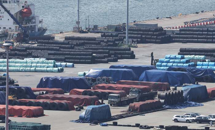 ▲ 경기도 평택항에 쌓여 있는 철강 제품 (사진=연합뉴스) |