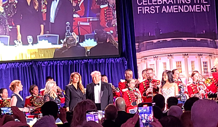 | ▲ 도널드 트럼프 미국 대통령이 25일(현지시간) 미국 워싱턴DC의 힐튼 워싱턴 호텔에서 열린 백악관출입기자협회(WHCA) 연례 만찬에 참석하고 있다. 2026.4.26 (사진=연합뉴스) |