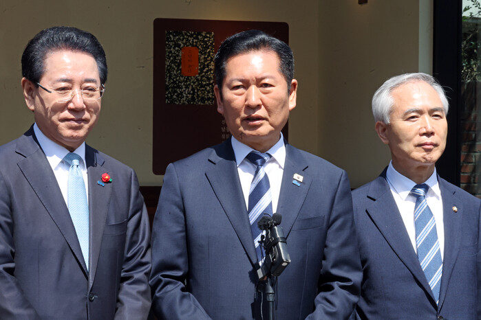 ▲ 더불어민주당 정청래 대표가 5일 광주 동구 남동성당을 찾아 부활절 미사를 마친 뒤 발언하고 있다. 2026.4.5 (사진=연합뉴스)