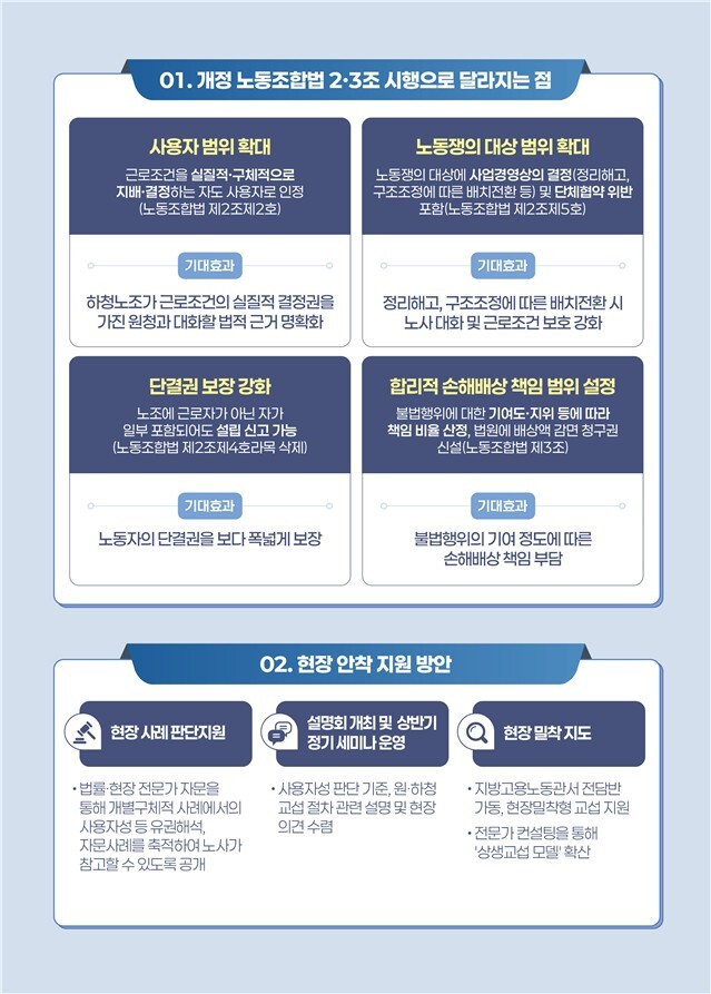한국노총은 현장 대응지침을 만들어 조직에 공유하고 신고센터 운영을 준비 중이며, 한국경영자총협회도 회원사에 단체교섭 대응 가이드라인을 배포했다.