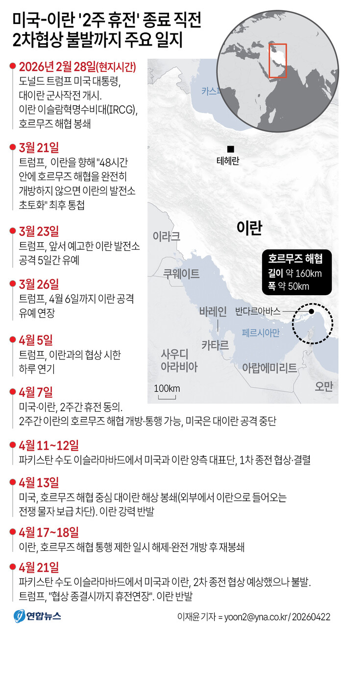 | ▲ 미국-이란 2차협상 불발까지 주요 일지 (제공=연합뉴스) |