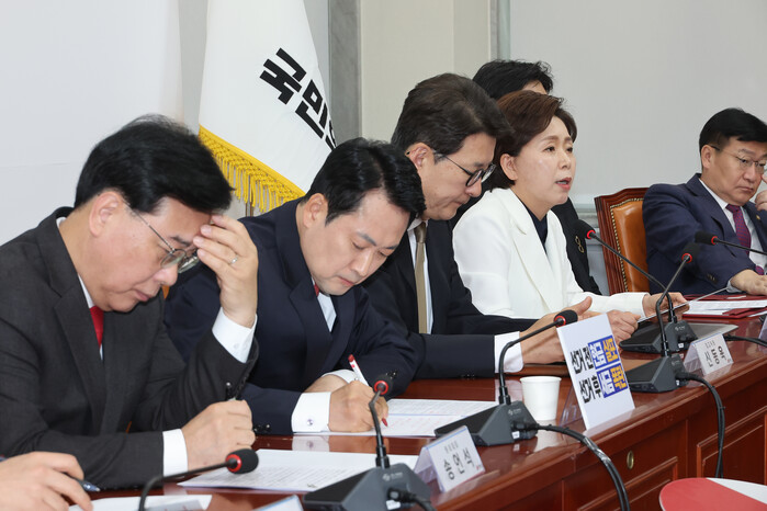 당 지도부 공식 회의에서 특정 후보를 직접 겨냥한 발언이 이어지자 회의장 분위기는 급격히 얼어붙었다. 송언석 원내대표와 신동욱 수석최고위원은 공개 발언 도중 자리를 떠났다. 최고위원 신분을 유지한 채 지방선거 경선에 나선 김 최고위원을 둘러싼 공정성 논란이 다시 불거졌다는 평가다.
