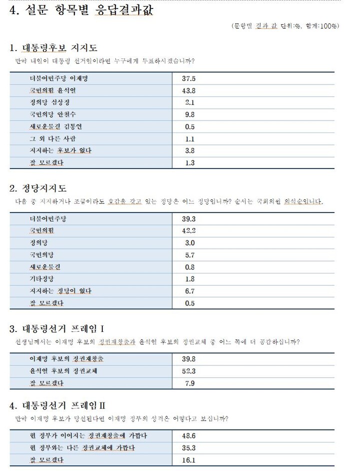 | ▲(문항별 결과 값 단위:%, 합계:100%) |
