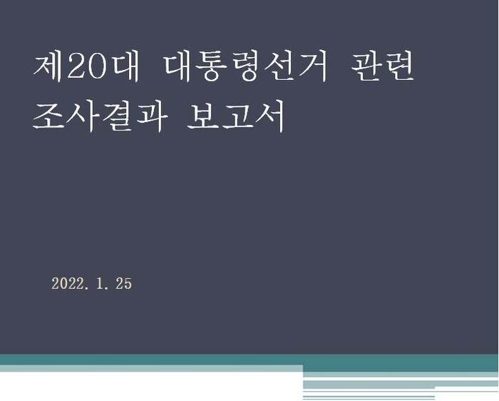 | ▲※ 최초 보도·공표 시 아래 문구를 포함하여야 합니다. 이번 조사는 ‘시사타파NEWS’ 의뢰로 데일리리서치가 1월 24일부터 25일까지 이틀동안 전국에 거주하는 만18세이상 남녀 1,000명을 대상으로 실시하였다. 조사방법은 유무선ARS전화조사, 피조사자 선정방법은 통신사제공 휴대전화가상번호 96%, 유선전화RDD 4% 이며, 최종 응답률은 6.7%, 표본오차는 95% 신뢰수준에서 ±3.1%p 이다. 2021년 12월 행정안전부 주민등록 인구기준 성별,연령별,지역별 가중값 부여(셀가중)하였으며, 자세한 조사개요와 결과는 중앙선거여론조사심의위원회 홈페이지를 참고하면 된다. |