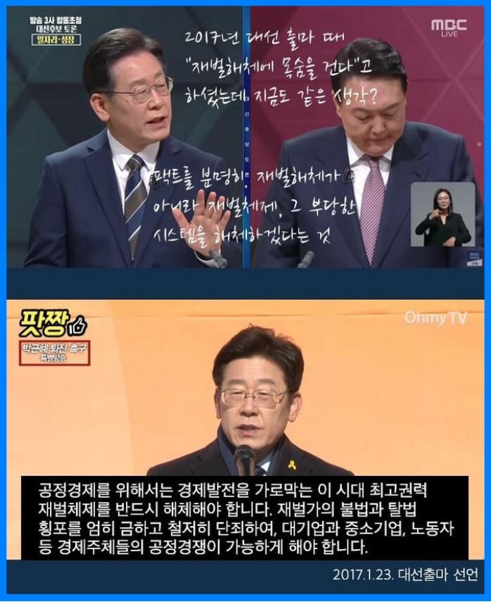 이 후보가 뒤집은 건가요? 하니, 윤 후보는 뒤집은 거라고 했다.