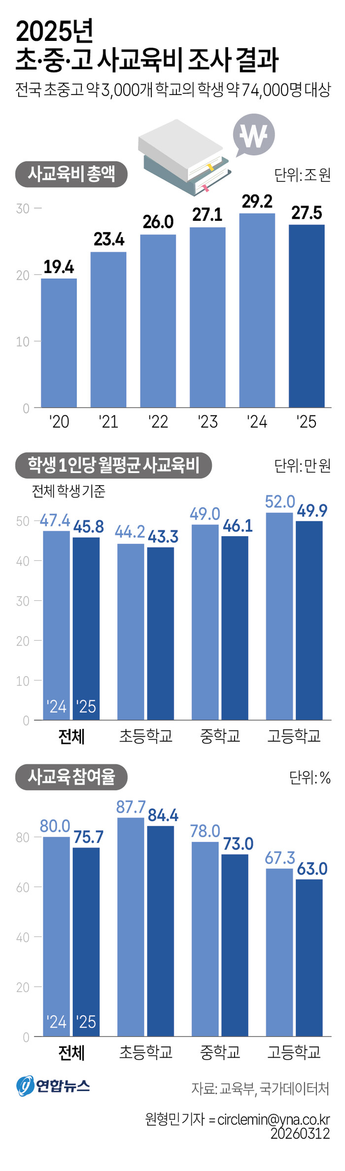 ▲ 2025년 초중고 사교육비 조사 결과 (제공=연합뉴스)