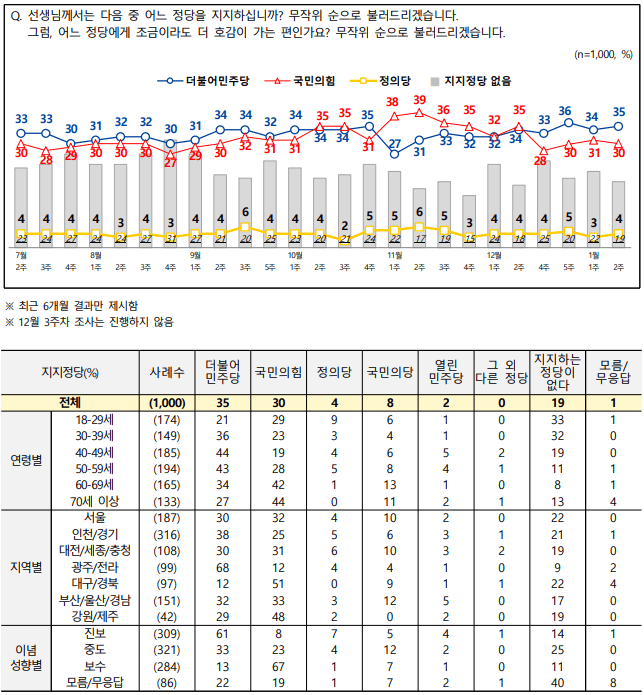 -정당지지도;더불어민주당35%,국민의힘30%,국민의당8%,정의당4%,열린민주당2%