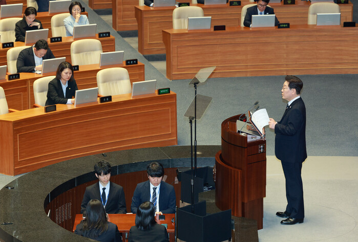 이 대통령은 2일 국회 추가경정예산안 시정연설에서 “어려운 민생에 든든한 버팀목이 되기 위해 비상한 수준의 대응이 필요하다”며 선제적 재정 투입의 필요성을 강조했다. 이번 추경안 규모는 총 26조2000억 원이다.
