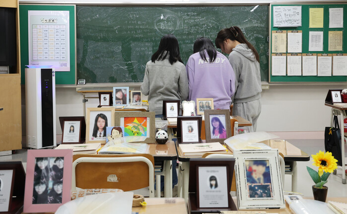 ▲ 세월호 참사 12주기를 사흘 앞둔 13일 경기도 안산시 단원고 4.16기억교실에 추모객 발길이 이어지고 있다. 2026.4.13 (사진=연합뉴스)
