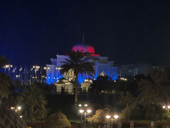 | ▲ 17일(현지시간) 아랍에미리트(UAE) 아부다비 대통령궁이 이재명 대통령의 국빈 방문을 환영하는 태극기 조명으로 빛나고 있다. 2025.11.18 (사진=연합뉴스) |