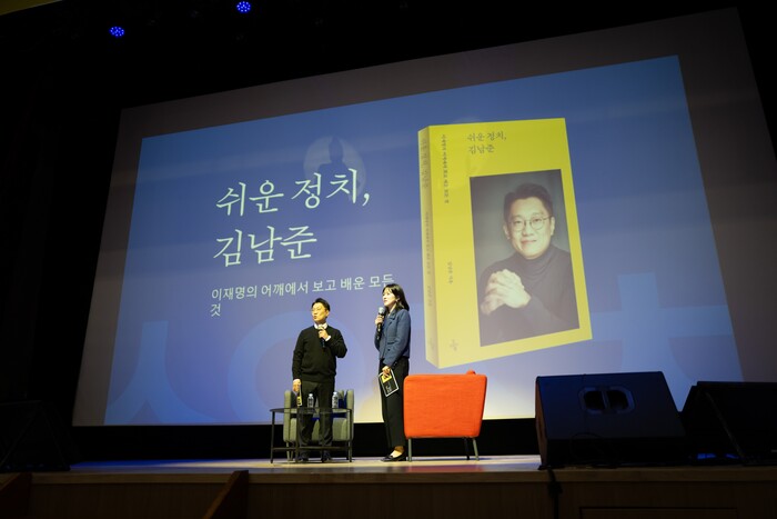 ▲ 김남준 전 청와대 대변인이 2일 인천 계양구 경인교육대학교에서 열린 '쉬운 정치, 김남준' 북콘서트에서 발언하고 있다. 2026.3.2 (사진=연합뉴스)