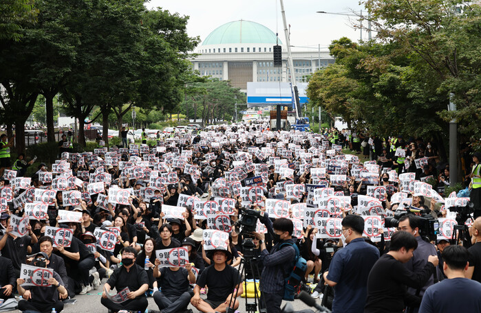 지난 16일 토요일, 전국 각지에서 모인 3만여명의 교사들이 다시 국회의사당 앞을 빼곡히 채웠다. 이번에도 검정 옷을 입었지만 국회를 등지고 앉아 항의표시를 전했다.