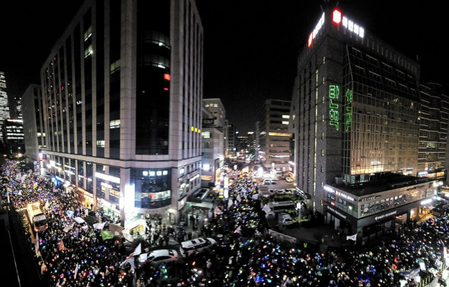 | ▲ 국민의힘 당사를 에워싼 5만 시민 (사진=연합뉴스) |