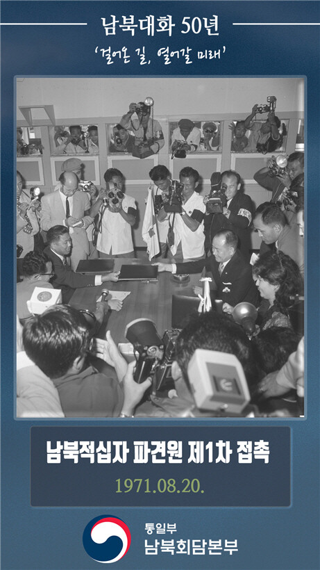 통일부 남북회담본부는 남북 대화가 시작된 지 50년을 맞아 2021년 8월 9일(월)부터 9월 8일(수)까지 1개월 간, 서울 지하철 1호선 4개 역사(△서울역 △시청역 △종각역 △종로3가역)에서 디지털 포스터를 이용해 남북 대화 사진을 전시한다.