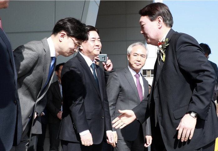 | ▲윤석열 대선후보 시절 한동훈 검사와 인사 나누는 모습 (사진=연합뉴스) |