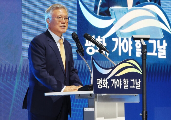 문 전 대통령은 4일 '10·4 남북정상선언 제17주년 기념식 및 2024년도 한반도 평화주간 폐막식'에 참석해 “지금 한반도 상황은 한국전쟁 이후 최악의 위기 상황”이라며 “‘적대적 두 국가론’과 ‘자유의 북진’이라는 흡수통일론은 마주 보고 달리는 열차와 같다”고 비판했다.