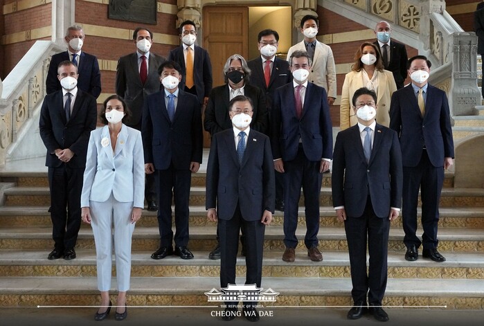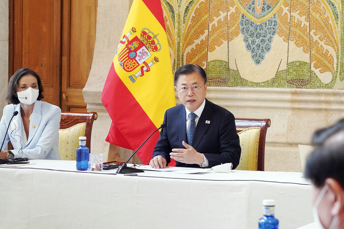 또, 문 대통령은 "관광산업은 전 세계적으로 에너지, 화학에 이은 세 번째 수출 분야"라며 "여행과 관광이 재개되어야, 국내 경제뿐 아니라 세계 경제 회복도 빨라질 수 있다고 강조했다. 이어서 “다행히 세계 각국에서 백신 접종이 확대되고, 국가 간 이동제한을 완화하기 위한 움직임도 활발해지고 있다며, "스페인과 한국이 앞장서 협력하고, 관광산업의 지속 가능한 미래를 함께 열어가길 기대한다”라고 말했다.