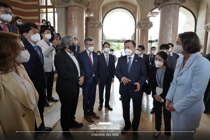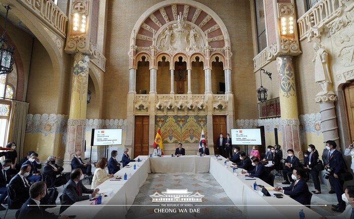 스페인 국빈방문의 마지막 날인 17일 오전(현지시각) 문재인 대통령은 바르셀로나의 산 파우 병원(유네스코 세계문화유산 등재)에서 열린 한-스페인 관광산업 라운드테이블에 참석해, 양국의 관광 분야 전문가 및 기업인들과 코로나 이후의 관광산업의 미래에 대해 논의했다. 특히 이 자리에서는 '한-스페인 상호 방문의 해(2020-2021)'를 1년 연장하는 양해각서가 체결됐다.