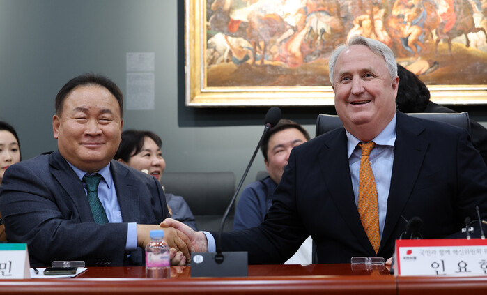 | ▲이상민 의원과 악수하는 인요한 혁신위원장 (사진=연합뉴스) |