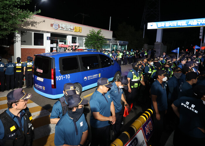 | ▲ 구속 전 피의자 심문(영장실질심사)을 마친 윤석열이 탑승한 차량이 경기도 의왕시 서울구치소로 들어가고 있다. 2025.7.9 (사진=연합뉴스) |