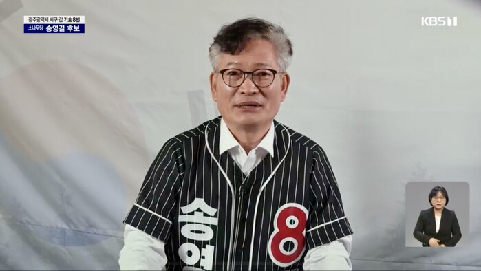 광주 서구갑 선거구에 옥중 출마한 송 후보는 KBS 광주방송총국의 녹화 선거 방송 연설에서 "조국·이재명에 이어 표적 수사를 받았다"며 "저의 옥중 당선은 곧 표적·별건 수사로 대표되는 검찰 공포 정치의 종식이 될 것"이라고 주장했다.