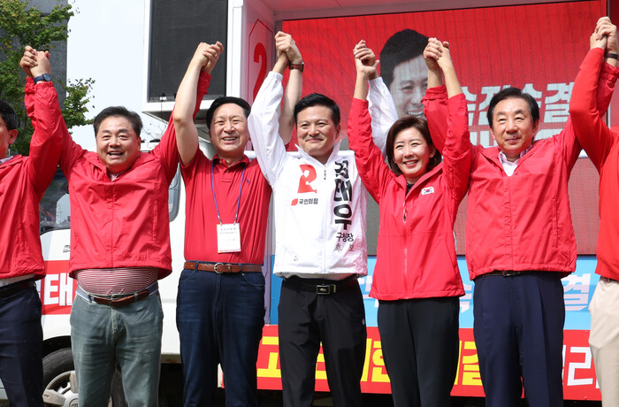 지난 5일에는 김기현 대표를 비롯해 40여명에 가까운 현역 위원이 유세 현장을 방문하며 총동원령이 떨어졌다는 우스개 소리가 나오기도 했다.