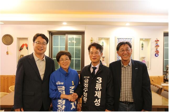 | ▲부산 금정구청장 후보 김경지 류제성, 단일화 방식 전격 합의 (사진=더불어민주당 부산시당) |
