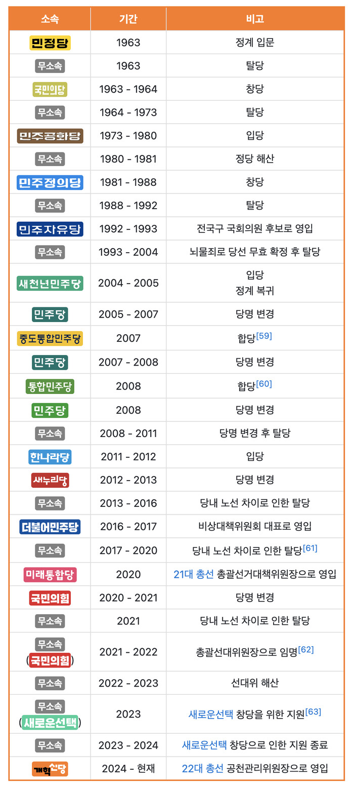 | ▲김종인 전 비대위원장의 정치역정 정리 (이미지=나무위키) |