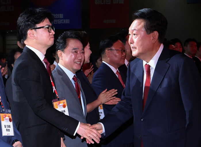 한편, 대통령실은 24일 한 대표를 비롯한 여당 신임 지도부는 물론, 퇴임하는 여당 지도부 전원과 전당대회 낙선자들도 포함한 전당대회 출마자들을 용산 대통령실로 초청, 만찬을 열 것으로 알려졌다.