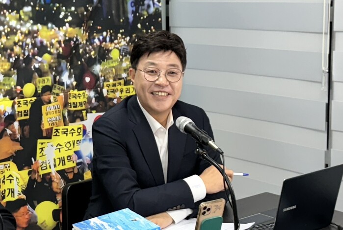 | ▲인터뷰 중인 조국 전 장관 (사진=시사타파뉴스 김진섭) |