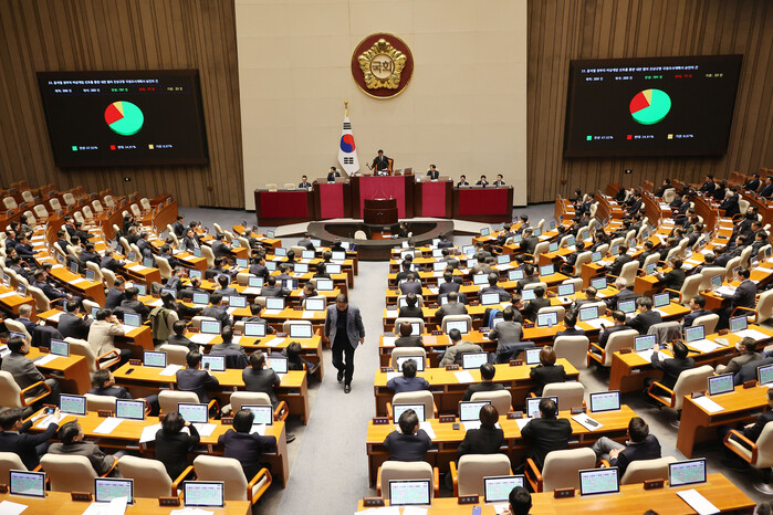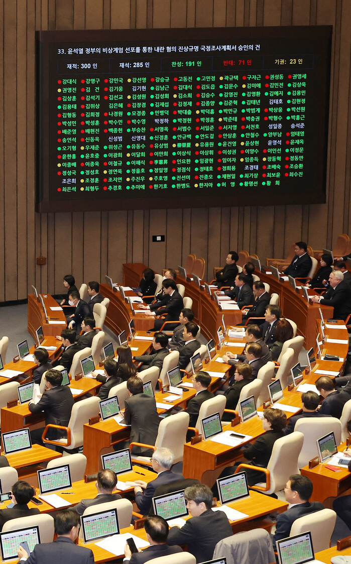 | ▲ 31일 국회 본회의에서 윤석열 내란 혐의 진상규명 국정조사계획서 승인의 건이 통과되고 있다. (사진=연합뉴스) |