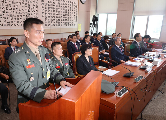 이날 청문회엔 지난해 7월 실종자 수색 작전 도중 급류에 휩쓸려 사망한 고 채수근 해병대 상병의 사망 및 수사 외압 의혹 사건 관계자 12명이 증인으로 채택됐다.