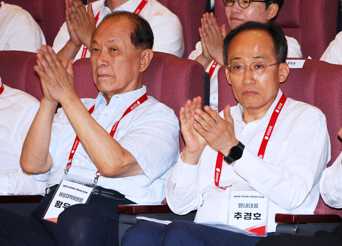 | ▲박수치는 황우여 비대위원장과 추경호 원내대표 (사진=연합뉴스) |