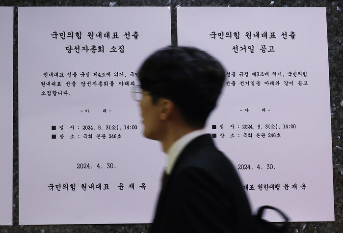 국민의힘이 차기 원내대표 후보 등록일인 1일을 하루 앞둔 4월 30일, 원내대표 선거일을 3일에서 9일로 연기했다.