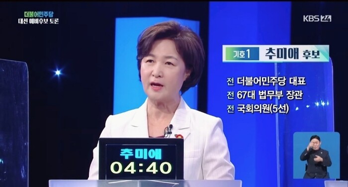 | ▲더불어 민주당 경선 토론의 추미애 후보 |