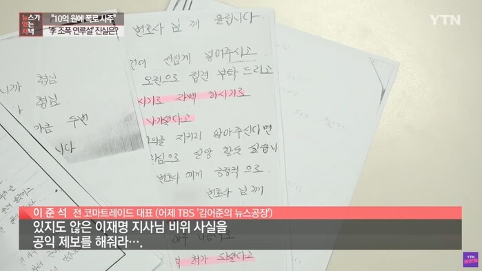 이재명 후보는 지난 9일 SNS를 통해 "국민의힘이 이번에 또 마약중독된 사기 폭력배와 결탁해 터무니없는 조폭뇌물사건을 조작한 것이 만천하에 드러나고 있다"라며 “박철민이 이준석(전 코마트레이드 대표)에게 보낸 협박 회유 조작 편지 일부를 우리 당이 입수해 분석 중”이라고 밝혔다.