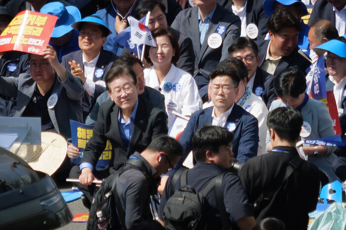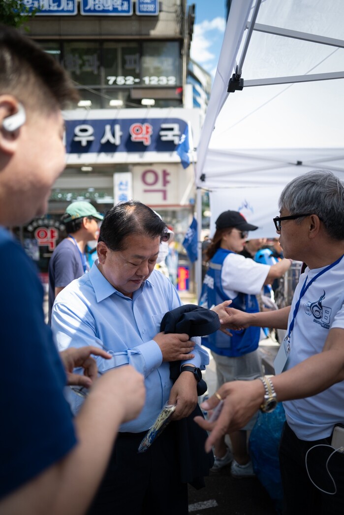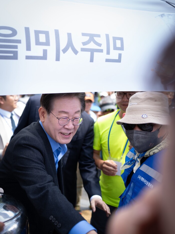 | ▲자원봉사천막 찾은 이재명 대표 (사진=시사타파뉴스 이외솔) |