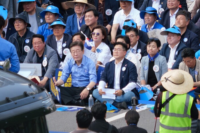 | ▲착석해 발언 순서를 기다리는 이재명 대표 (사진=시사타파뉴스 이외솔) |