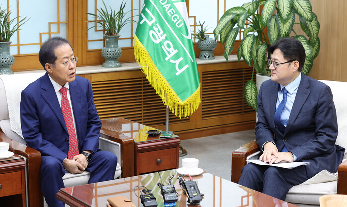 16일 대구 시청 산격청사에서 만난 홍 시장은 "달빛고속철도 특별법은 여야 협치로 됐다. 12월에 해달라"며 "법안 통과 되면 연구용역비도 해달라"고 요청했다.