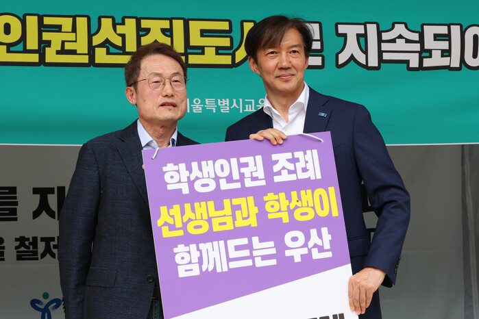 | ▲조희연 교육감과 함께 한 조국 조국혁신당 대표 (사진=연합뉴스) |