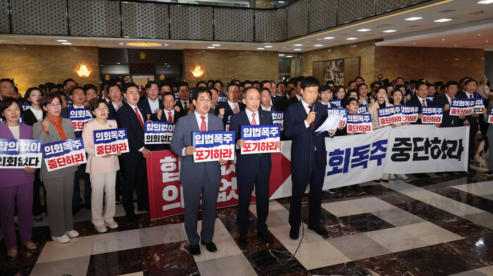 | ▲의회독주 중단 구호 외치는 국민의힘 피케팅 모습 (사진=연합뉴스) |