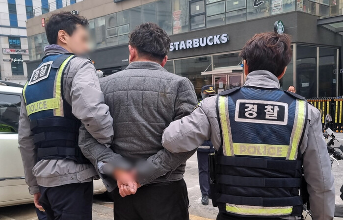 | ▲분신 시도하다 체포된 장일 전 서울 노원을 당협위원장 (사진=염합뉴스) |