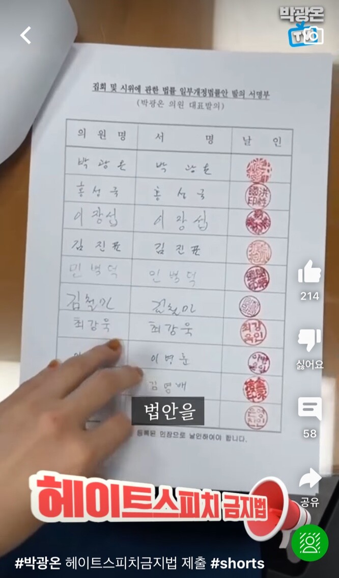 박 의원의 법률안은 '헤이트 스피치(hate speech, 특정 집단에 대한 공개적 차별·혐오 발언)를 금지하는 조항을 신설한 집시법 개정안이다.