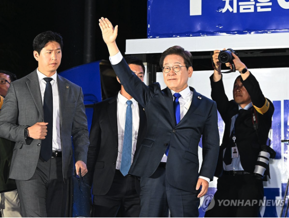 | ▲ 제21대 대통령 선거에서 당선이 확실시 되자 시민들에게 인사하는 이재명 더불어민주당 대선 후보. 2025.6.3 (사진=연합뉴스) |
