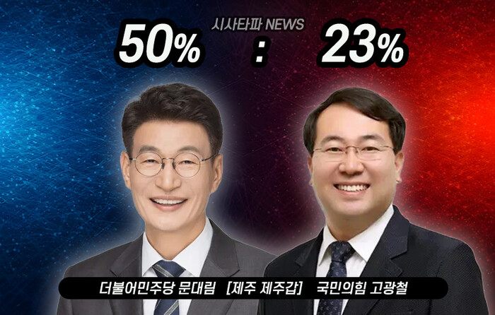 26일, KBS제주가 여론조사 전문기관 한국리서치에 의뢰해 지난 23일부터 25일까지 실시한 총선 여론조사 결과에 의하면 제주시 갑 선거구에서는 후보지지도가 더불어민주당 문대림 후보 50%, 국민의힘 고광철 후보 23%로 나타났다.