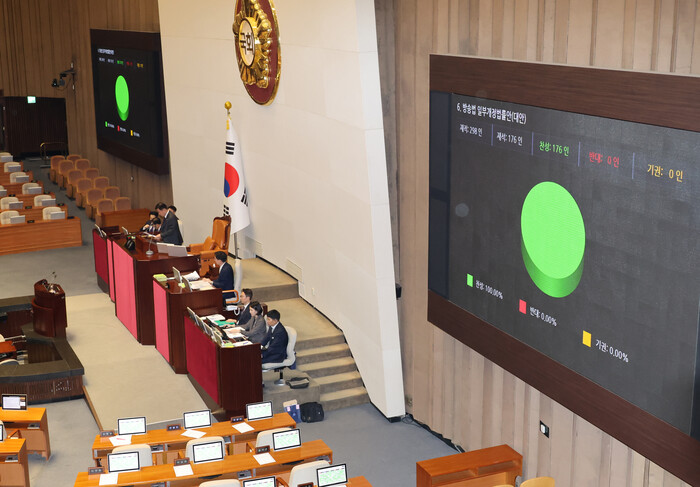 이날 국회 본회의를 통과한 방송3법 개정안은 KBS 이사회, MBC 대주주인 방송문화진흥회(방문진), EBS 이사회의 구성을 바꾸는 내용이다.