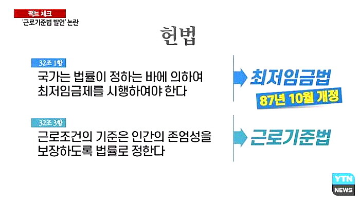 | ▲ 대한민국 헌법32조1항, 최저임금법은 헌법에도 명시돼 있다. YTN |