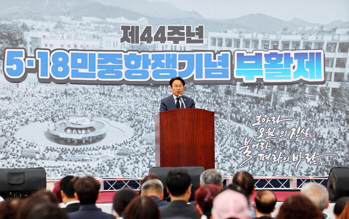 강기정 광주시장은 추모사에서 "5월 27일 새벽 전남도청을 지켰던 열사들이 염원한 민주주의가 떠오른다"며 "5·18 정신을 헌법 전문에 담아 흔들리지 않은 민주주의의 뿌리로 삼겠다"고 밝혔다.