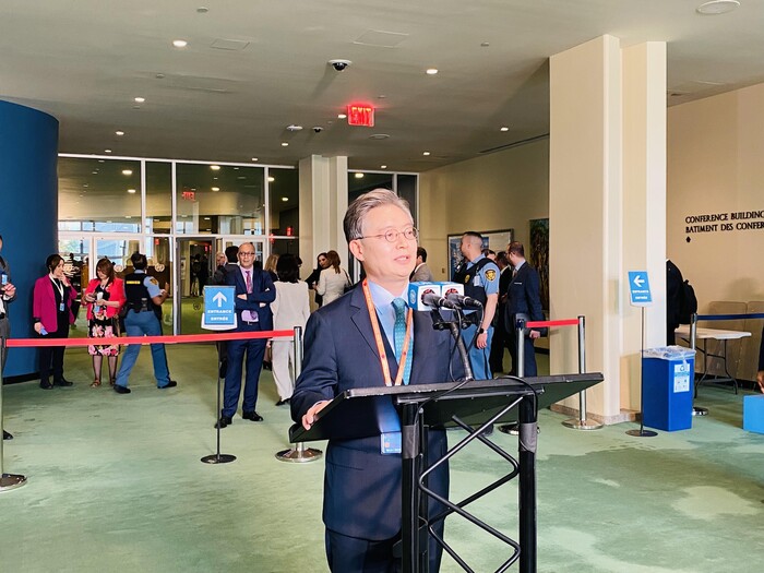 | ▲안보리 선출 직후 소감 밝히는 황준국 주유엔대사 (사진=연합뉴스) |