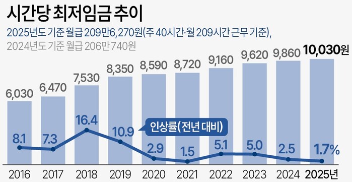 월급 기준으로는 209만6천270원…인상률은 역대 두 번째로 작아